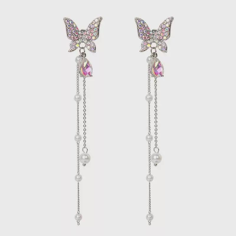 Celestial Butterfly Pearl Drop Earrings