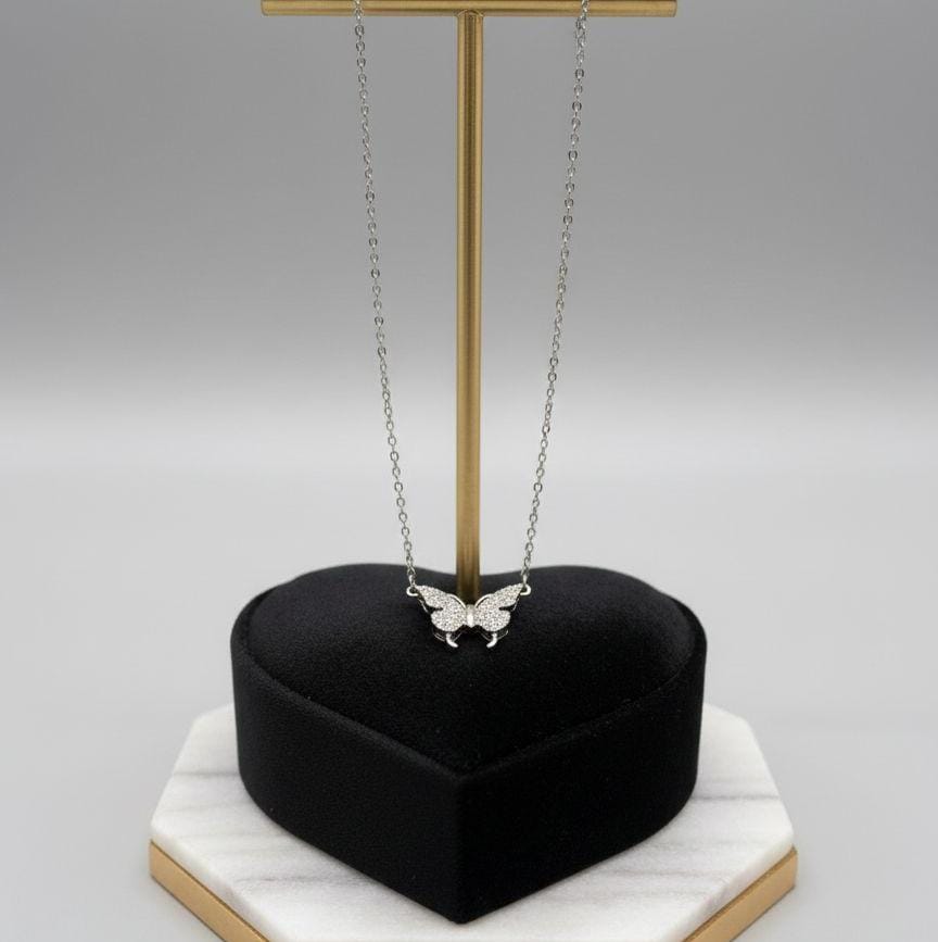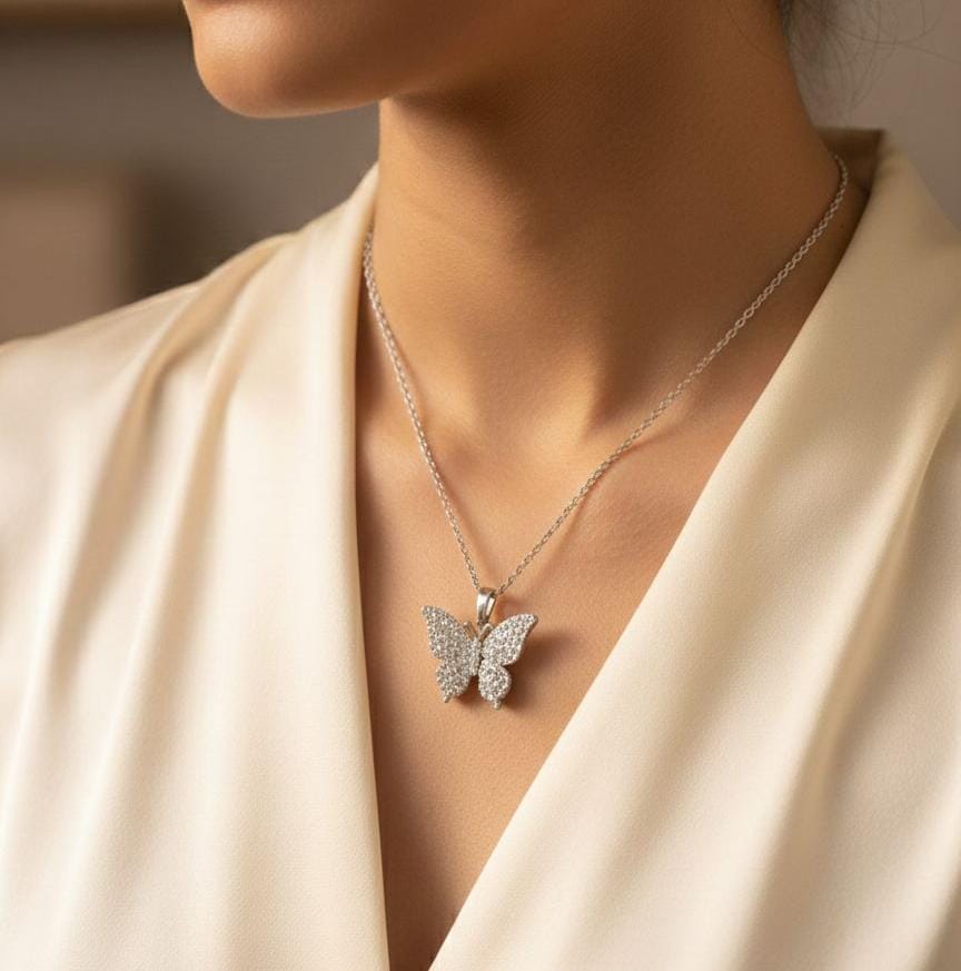 Crystal Butterfly Silver-Tone Pendant Necklace