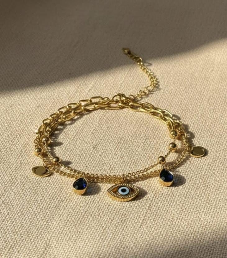 Evil Eye Layered Charm Bracelet