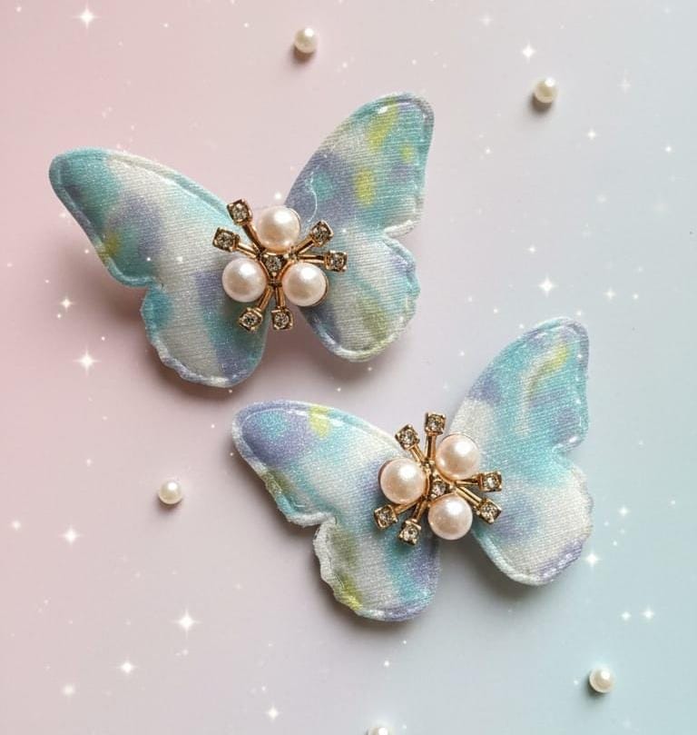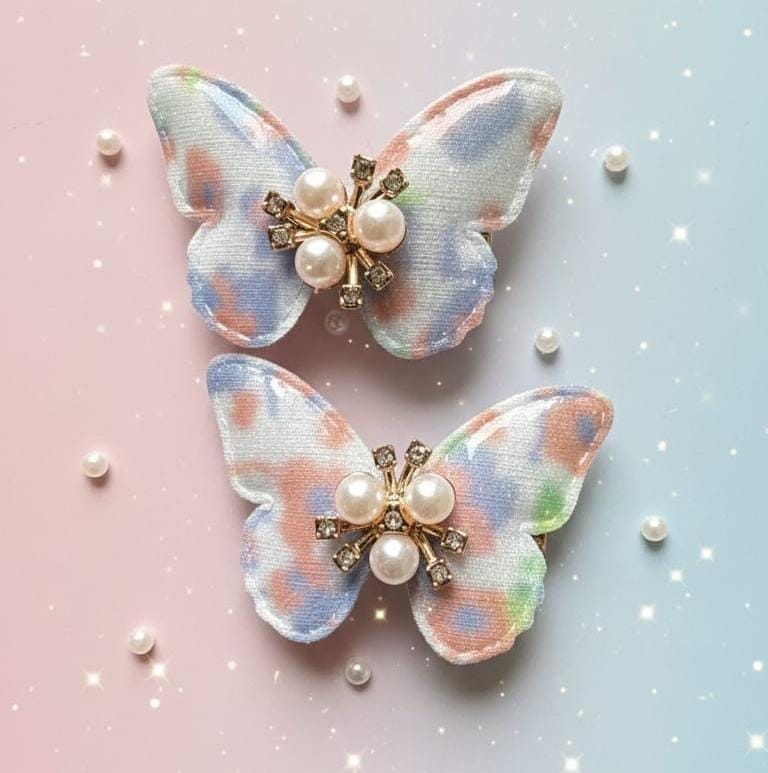 Pastel Butterfly Pearl Hair Clips